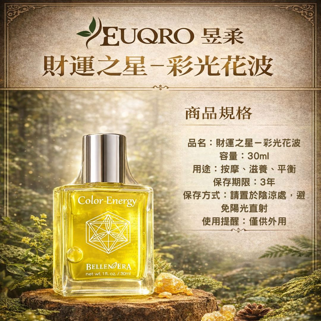 為彩光花波系列中代表「豐盛與能量流動」的黃色花波精華。